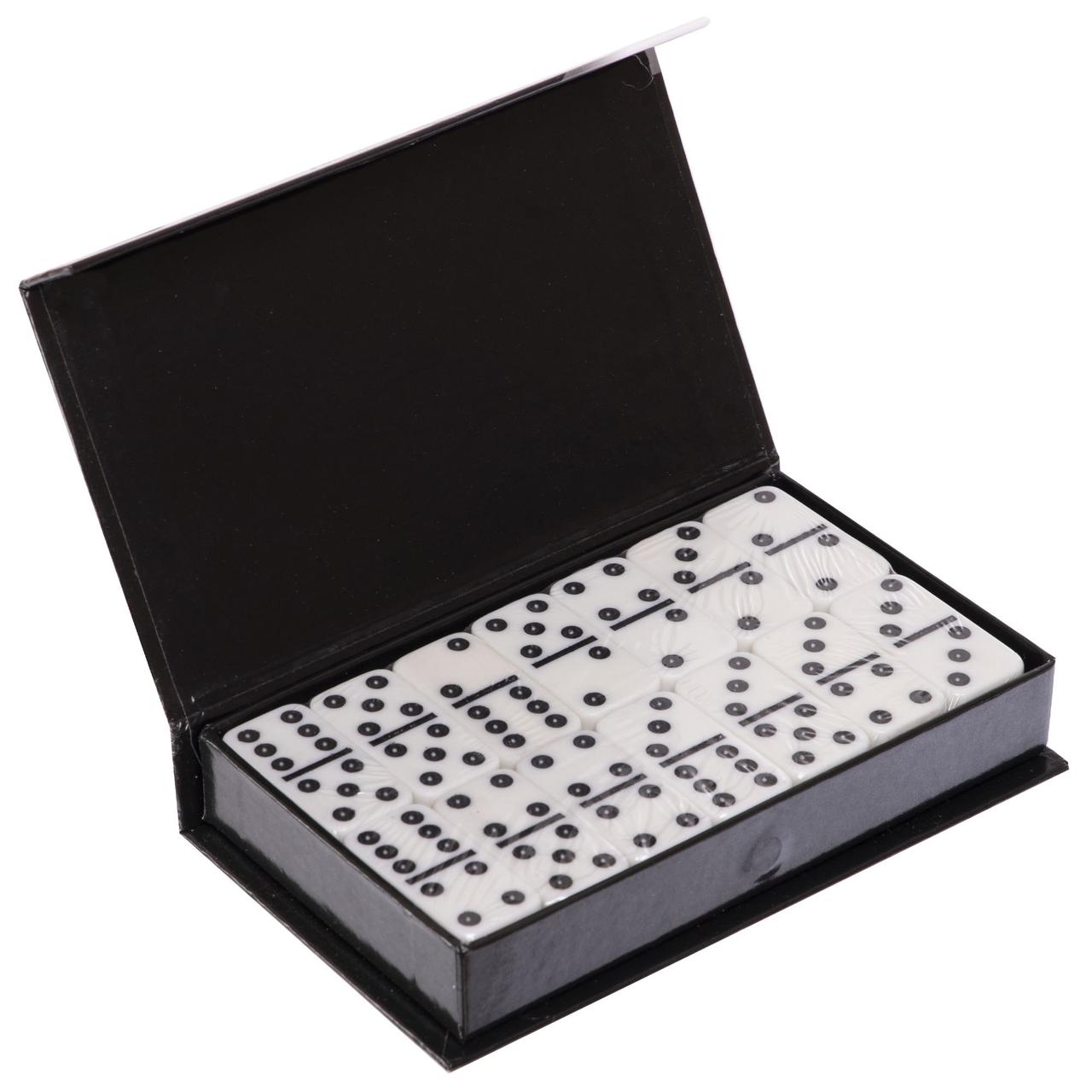 Це доміно являє собою стандартний набір із 28 кісточок, що мають традиційний вигляд — розділений надовий лицьовий бік із певною кількістю точок і однакові «спинки». Костяшки виготовлені з високоякісного пластику, що характеризується надзвичайною міцністю. Завдяки цьому вони здатні витримати практично будь-які удари об стіл, які часто трапляються в пилу гри. Для зберігання кісточок передбачена акуратна компактна коробка, виготовлена з ламінованого картону.